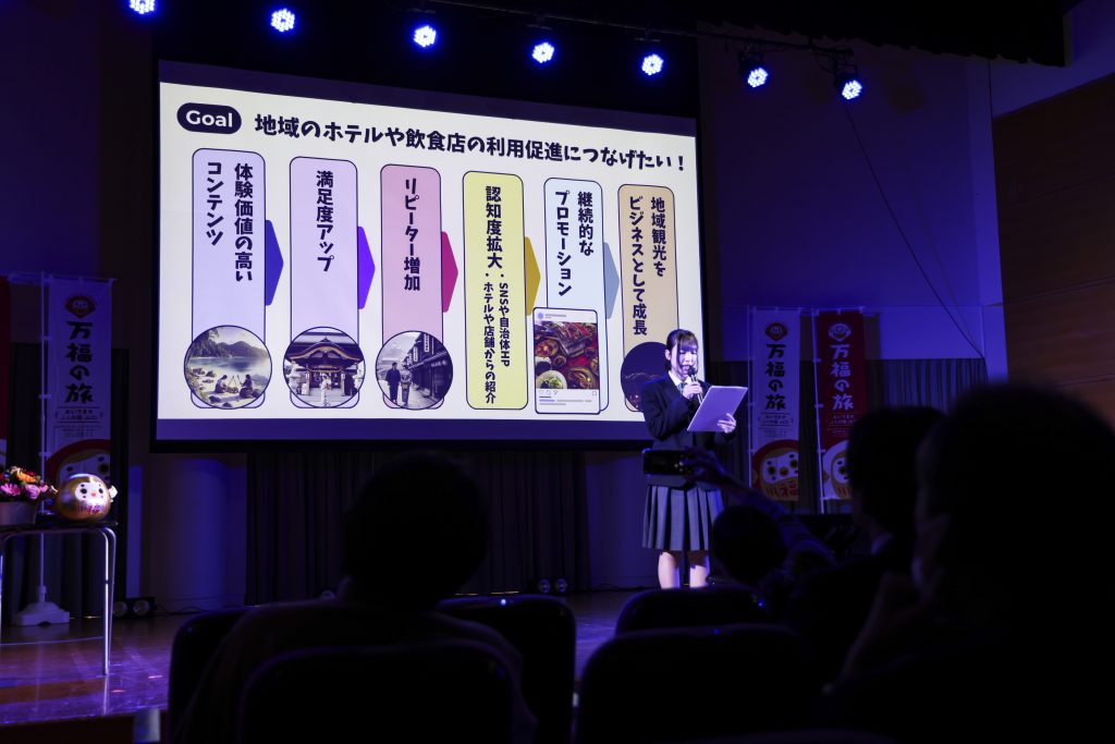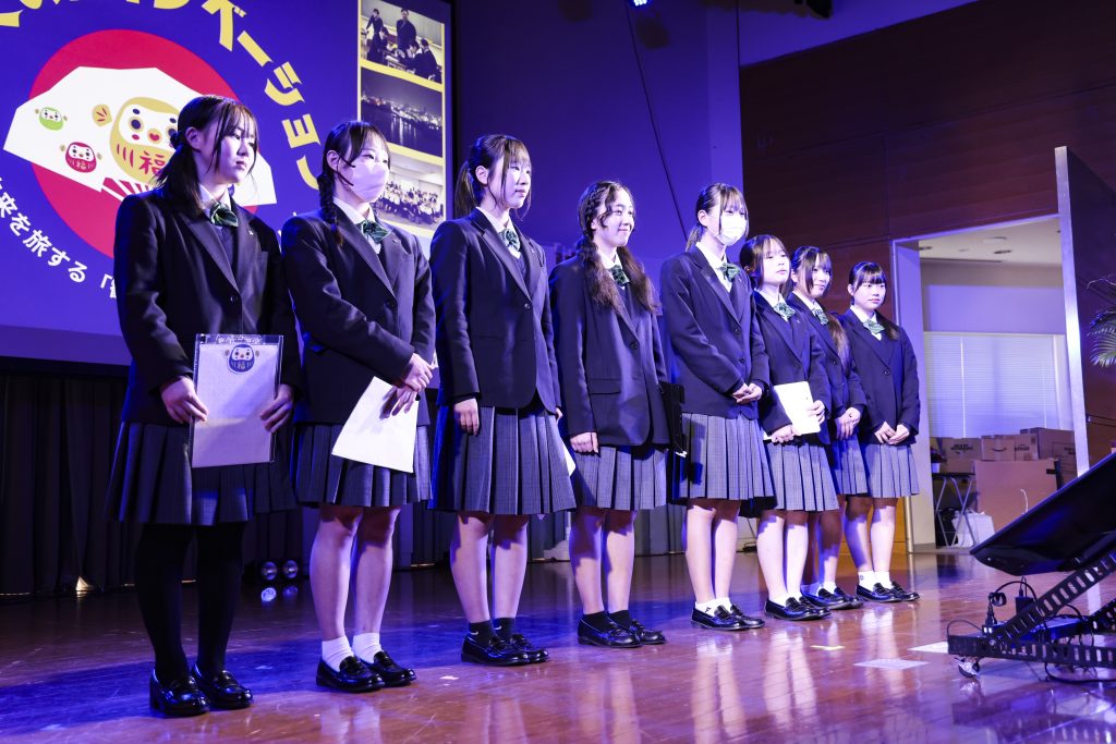 さらに、その後に行われた「知事と高校生等とのパネルディスカッション」では、本校の代表生徒が他校の高校生や村岡県知事、一般社団法人メタ観光推進機構の牧野代表理事とともに、これまでのプロジェクトを振り返りました。