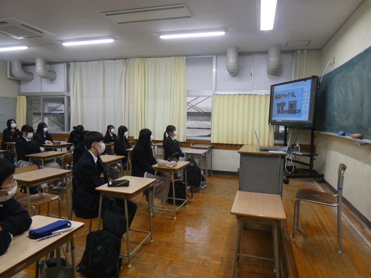カテゴリー 日々の記録 薬物乱用防止教室(R7.12.19) 投稿者 作成者: iwakuni-kanri 投稿日 2026年1月6日 12月19日(金)のLHRにて、薬物乱用防止教室を開催しました。今年度は岩国警察署の生活安全課の職員の方を講師としてお招きしてオンライン形式で行い、薬物乱用の危険性について講演いただきました。 ← 3年次 生物 「わかりやすさ」の要素を見つける(R7.12.16) → クラスマッチ(R7.12.23)